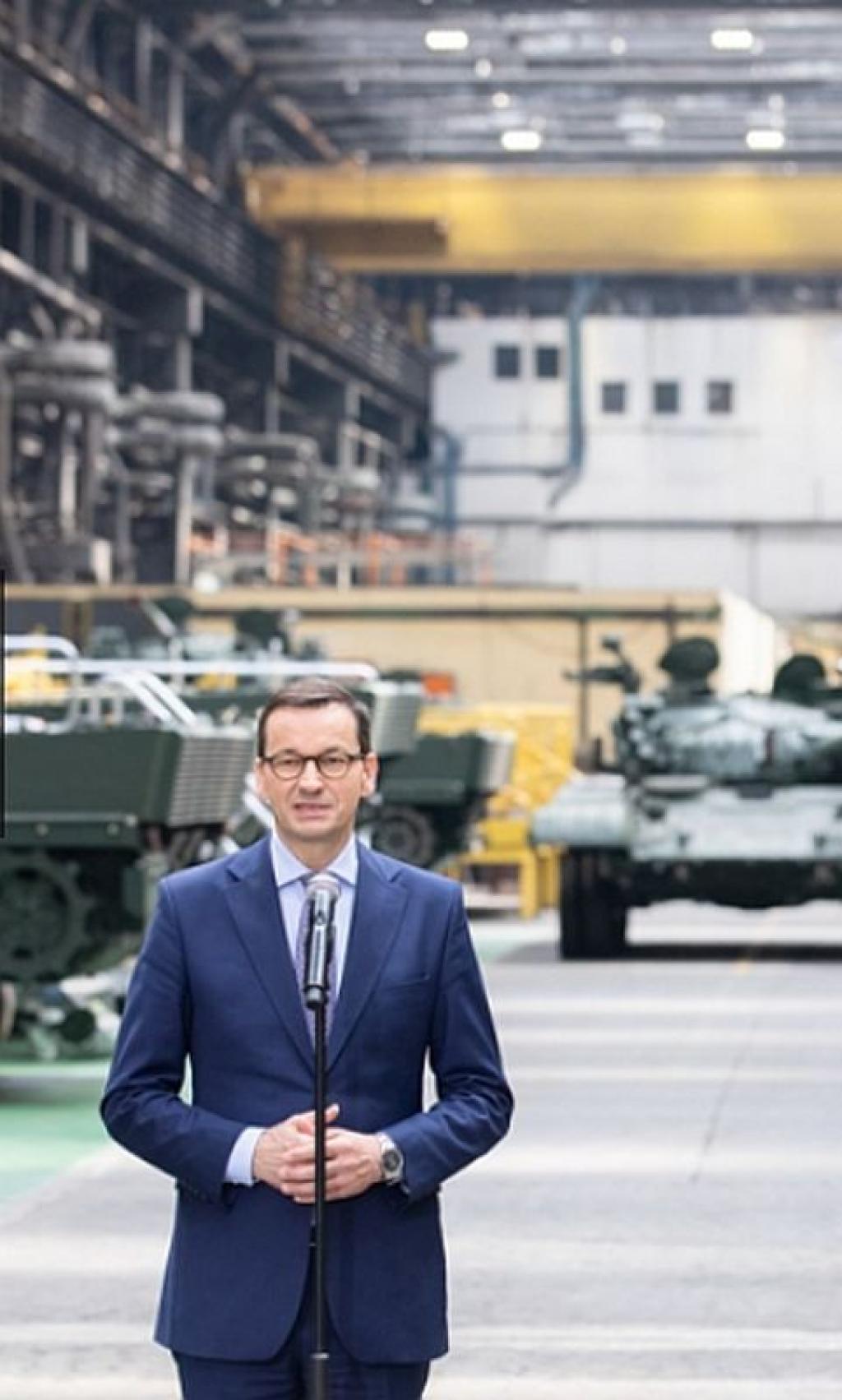 Szef rządu wraz z ministrem obrony Mariuszem Błaszczakiem wzięli udział w uroczystości podpisania umowy dotyczącej unowocześnienia czołgów T-72.