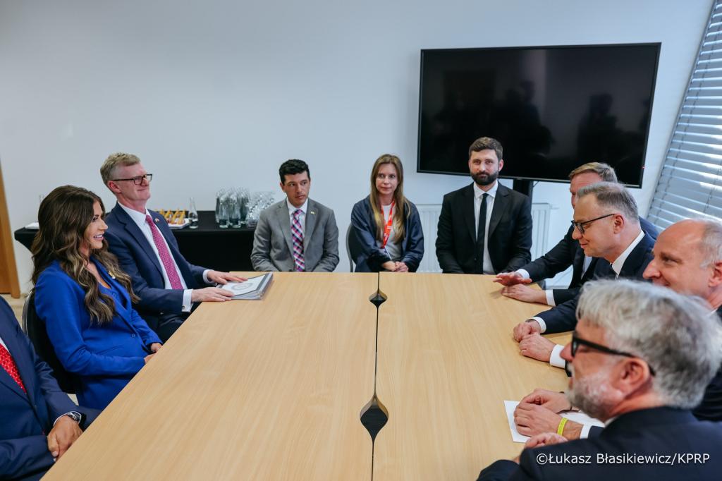 Na marginesie konferencji CPAC Polska 2025 Prezydent rozmawiał z Kristi Noem, Sekretarzem ds. Bezpieczeństwa Krajowego USA. Andrzejowi Dudzie towarzyszyli Ministrowie KPRP: Marcin Mastalerek, Wojciech Kolarski i Nikodem Rachoń.